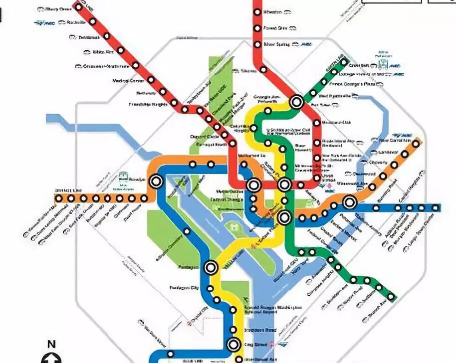 地铁的布局也是围绕白宫及中轴线为政治中心,呈现八卦状辐射开来。类似临沂市南坊新区的城市核心格局。