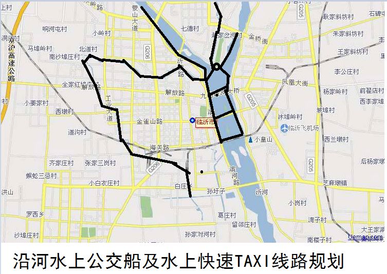现建议,沿两岸主要社区及居委建设多所码头,东岸南起小皇山,途径河东区、南坊新区直达北京路桥,西至沂蒙路桥下穿,直达书法广场、到临沂大学北校门。中由凤凰广场下穿至临西八路与涑河街交汇,西岸连接妇幼保健院、沂河花园沿线各大社区,总里程30公里,开通15分钟一般的快速“摆渡船”,类似香港维多利亚港的“火星小轮”或黄浦江上的“观光摆渡船”。既起到观光旅游作用,又代替了沿线公交车不足,解决了滨河大道阻塞的问题。据了解,伦敦市早在1995年就在泰晤士河上推出了水上taxi出租车,成为泰晤士河著名的观光项目,也成为很多伦敦白领上班必坐的交通工具。