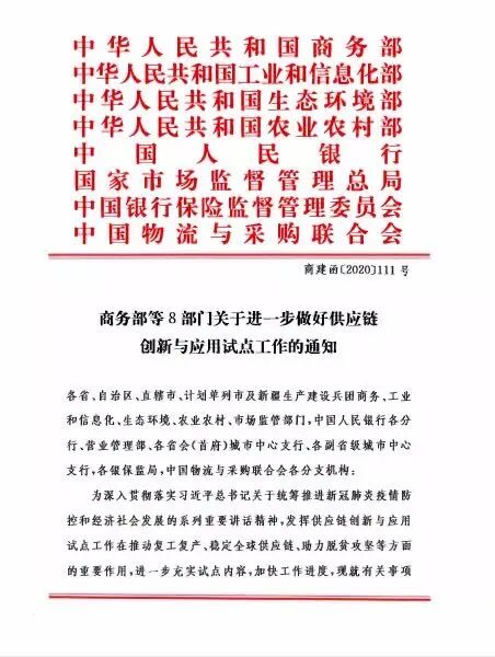 八大部委联合发文,要求进一步做好供应链创新与应用试点